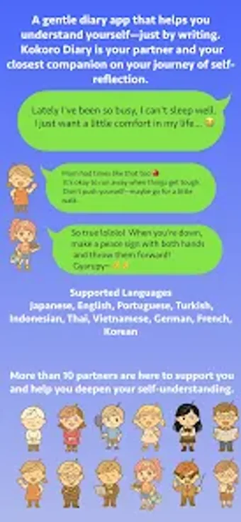 Belangrijke functies zijn onder andere automatische stemming scores, een stemmingskalender voor snelle inzichten, en trendgrafieken die helpen bij het herkennen van terugkerende emotionele patronen. Gebruikers kunnen ook hun schrijfhistorie bijhouden, met informatie over woordgebruik en streaks. Met meer dan tien ondersteunende karakters en multi-taalondersteuning, biedt Kokoro Diary een veilige en motiverende omgeving voor zelfreflectie en persoonlijke groei.